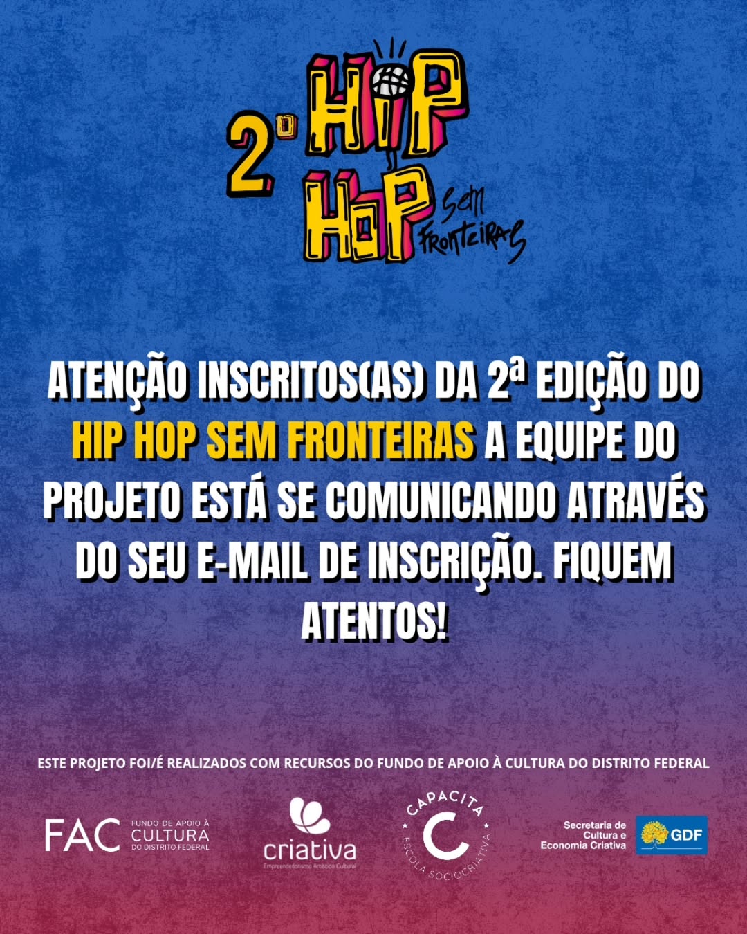 Saiba mais >>Informamos que o resultado do 2º Hip Hop Sem Fronteiras passou por uma atualização. O...